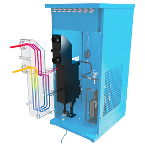 Benefit from the cutting-edge aluminum heat exchanger design, which maximizes performance while minimizing pressure drop. This unique heat exchanger serves as both an air to air and air to refrigeration heat exchanger, enhancing efficiency by pre-cooling warm and humid air.